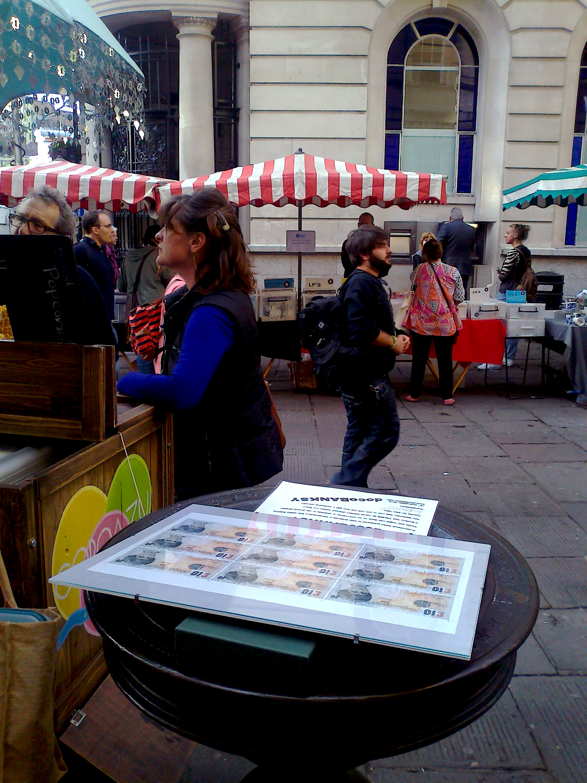 I wanted to capture people’s reactions to the Di Faced tenners. Simon’s idea was that we were presenting an alternative to the Bristol pound. Banksy possibly presented the first version of the Bristol pound with the Di Faced tenner back in 2004 when they were first produced.
