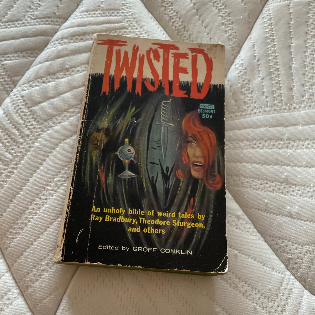 Twisted, a 1962 horror anthology edited by the magnificently named Groff Conklin. A nice mix of classics from the likes of Ambrose Bierce and Guy de Maupassant to chillers from Theodore Sturgeon and Ray Bradbury. Come on, just look at that cover!