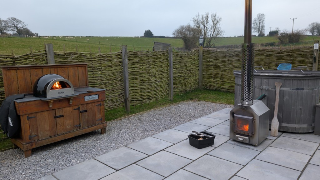 The big attraction, though, are the wood-fired accoutrements on offer—a barbecue, a chiminea and a stove. A pizza oven. A hot tub. Luxury with a slightly rough edge. I could do the manly stuff while C relaxed and enjoyed a pampering on her birthday weekend.